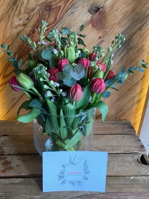 Dit schitterende "Dubbel Voorjaar" tulpenboeket straalt de energie van de lente uit met een dynamische combinatie van dieprode en paarse tinten. Het boeket vangt de kracht van twee seizoenen in één en brengt een levendige, krachtige sfeer in elke ruimte. Bestel dit unieke boeket eenvoudig online bij Jamies Bloemenstudio en laat het snel bezorgen in Almere. Perfect als cadeau voor de lente of om je interieur een energieke en gedurfde uitstraling te geven.