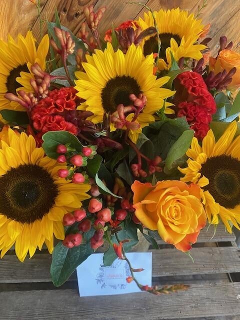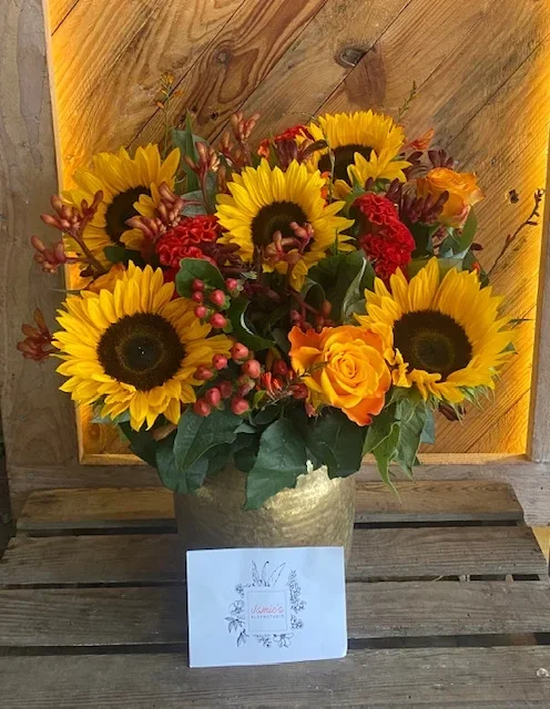 Bestel dit stralende boeket online bij Jamies Bloemenstudio en laat het bezorgen in Almere. Breng een glimlach op het gezicht van een dierbare of verwen jezelf met de pure schoonheid en positieve energie van zonnebloemen.